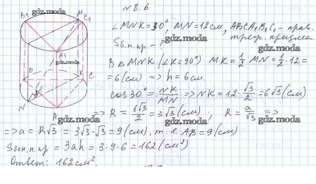 ОТВЕТ на задание № 8.6 Учебник по Геометрии 11 класс Мерзляк Алгоритм успеха Углубленный уровень
