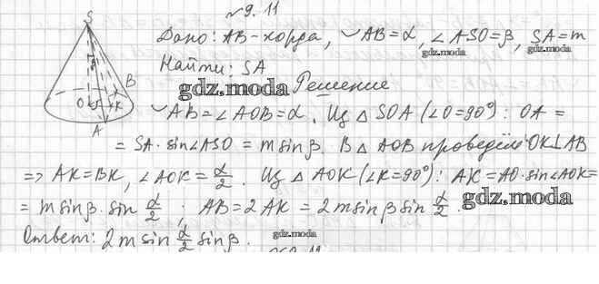 ОТВЕТ на задание № 9.11 Учебник по Геометрии 11 класс Мерзляк Алгоритм успеха Углубленный уровень