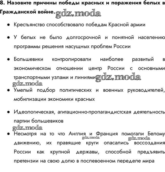 ГДЗ решение к заданию № 8 История. Конец XIX — начало XXI века 11 класс Загладин Н.В. Русское слово 2014  Базовый уровень ФГОС бесплатно на гдз.мода!