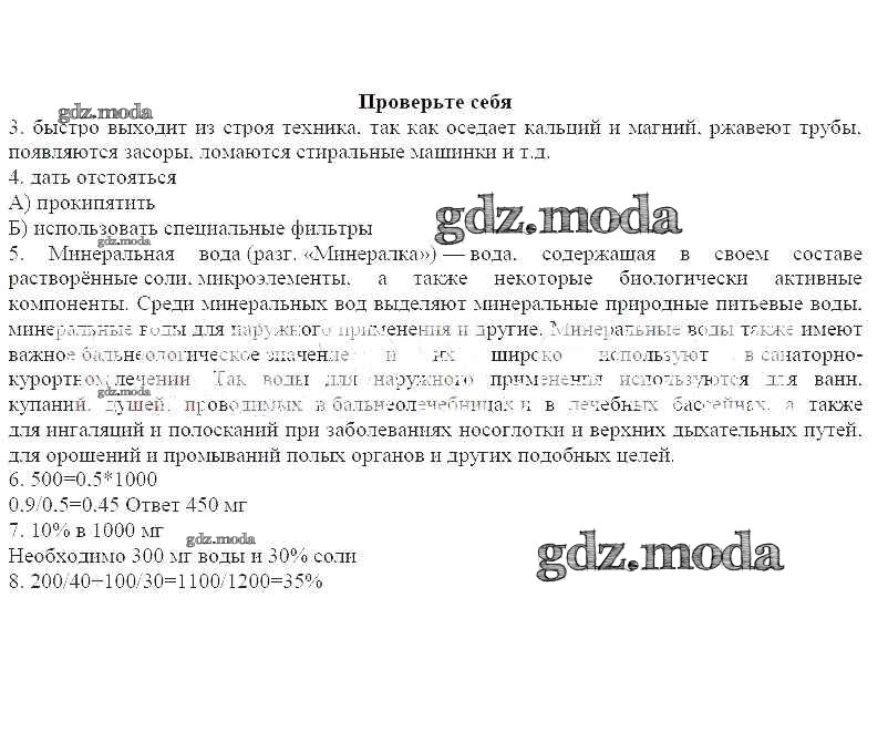 Жидкое состояние веществ. Вода. Массовая доля растворенного вещества / проверьте себя