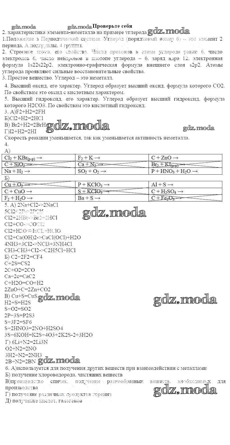 ГДЗ решение к заданию № Проверьте себя Химия 11 класс рабочая тетрадь Габриелян Базовый уровень Дрофа 2014 Базовый уровень бесплатно на гдз.мода!