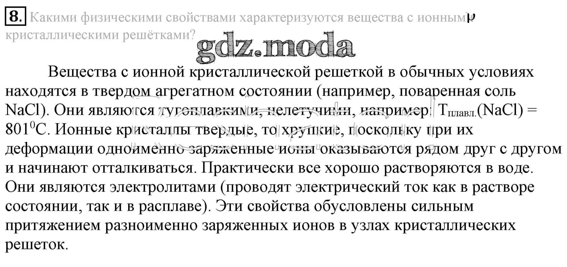 ГДЗ решение к заданию № 8 Хиимия 11 класс Габриелян О.С. Дрофа 2013 Базовый уровень ФГОС бесплатно на гдз.мода!