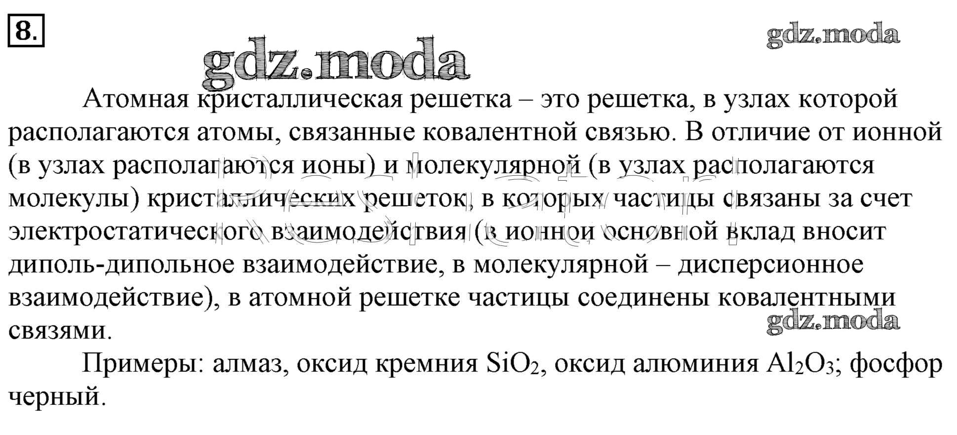 ГДЗ решение к заданию № 8 Хиимия 11 класс Габриелян О.С. Дрофа 2013 Базовый уровень ФГОС бесплатно на гдз.мода!