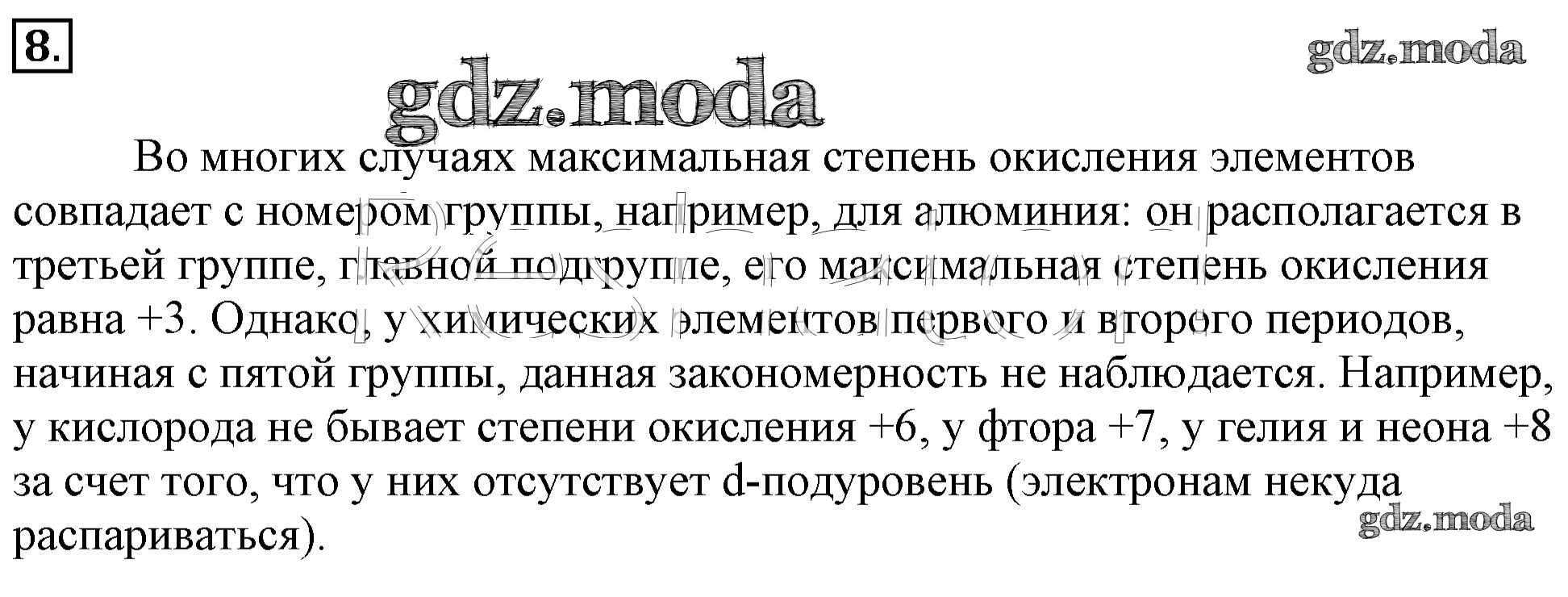 ГДЗ решение к заданию № 8 Хиимия 11 класс Габриелян О.С. Дрофа 2013 Базовый уровень ФГОС бесплатно на гдз.мода!