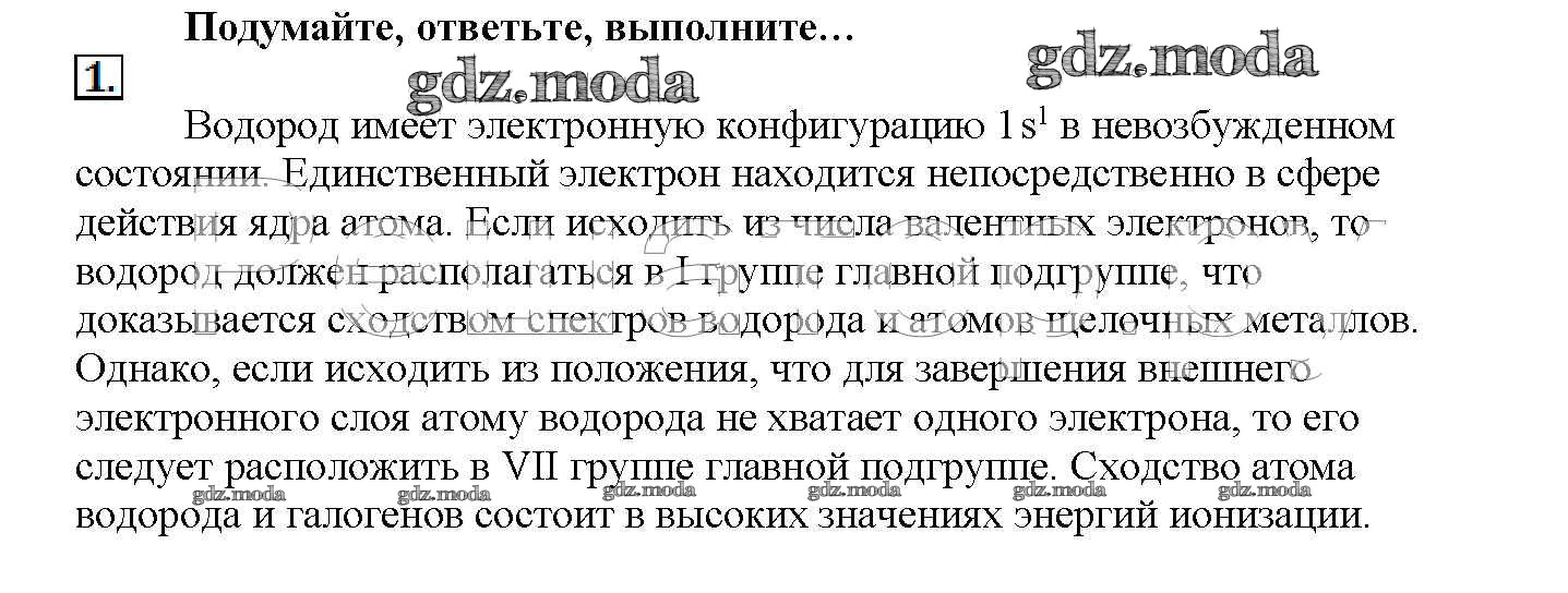 ГДЗ решение к заданию № 1 Химия 11 класс Рудзитис Г.Е. Просвещение 2017 Базовый уровень ФГОС бесплатно на гдз.мода!