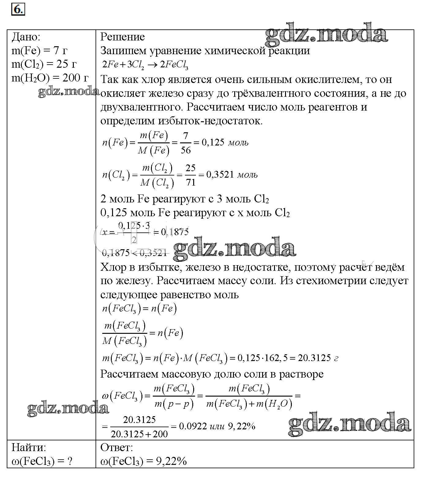 ГДЗ решение к заданию № 6 Химия 11 класс Рудзитис Г.Е. Просвещение 2017 Базовый уровень ФГОС бесплатно на гдз.мода!