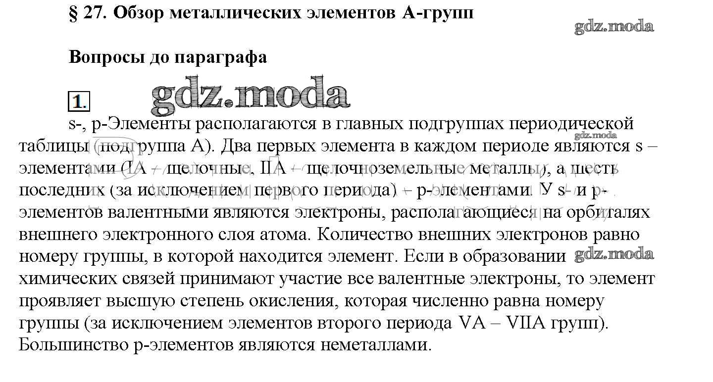 ГДЗ решение к заданию № 1 Химия 11 класс Рудзитис Г.Е. Просвещение 2017 Базовый уровень ФГОС бесплатно на гдз.мода!