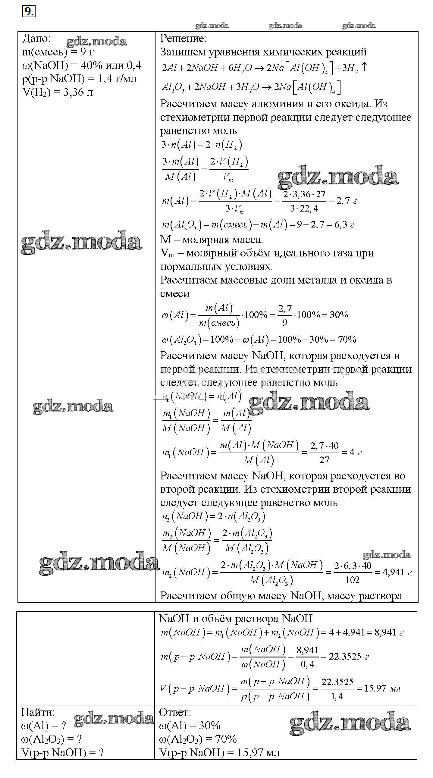 ГДЗ решение к заданию № 9 Химия 11 класс Рудзитис Г.Е. Просвещение 2017 Базовый уровень ФГОС бесплатно на гдз.мода!