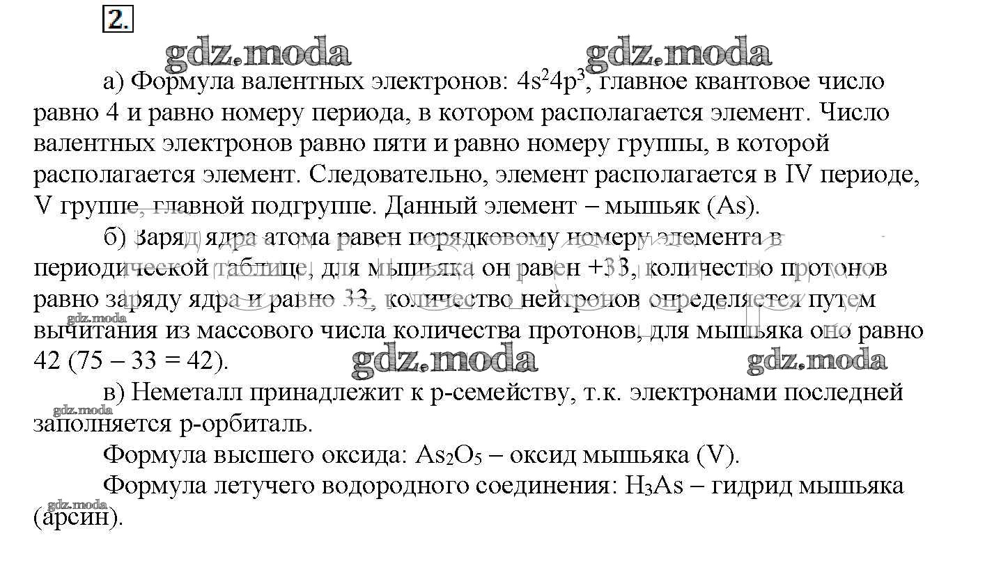 ГДЗ решение к заданию № 2 Химия 11 класс Рудзитис Г.Е. Просвещение 2017 Базовый уровень ФГОС бесплатно на гдз.мода!
