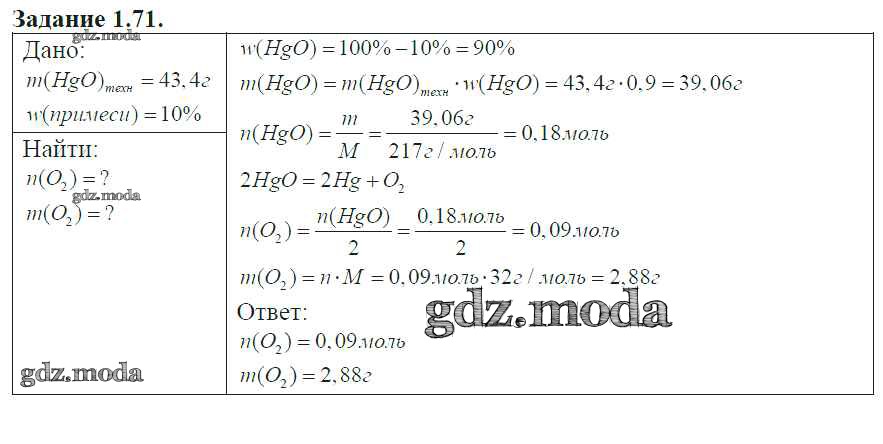 ГДЗ решение к заданию № 71 Химия 8-11 классы сборник задач и упражнений Хомченко И.Г. Новая волна 2011 ФГОС бесплатно на гдз.мода!