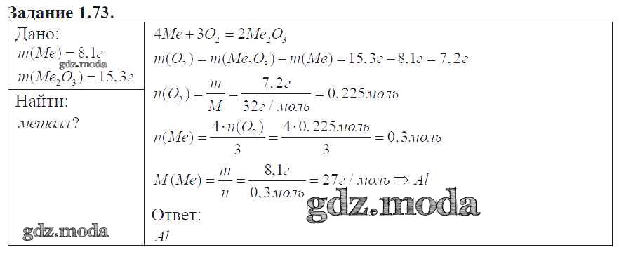 ГДЗ решение к заданию № 73 Химия 8-11 классы сборник задач и упражнений Хомченко И.Г. Новая волна 2011 ФГОС бесплатно на гдз.мода!