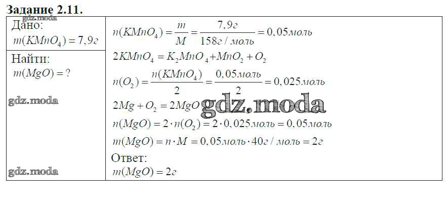 ОТВЕТ на задание № 11 Сборник задач и упражнений по Химии 8-11 класс Хомченко