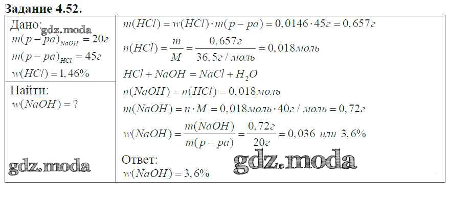 ГДЗ решение к заданию № 52 Химия 8-11 классы сборник задач и упражнений Хомченко И.Г. Новая волна 2011 ФГОС бесплатно на гдз.мода!