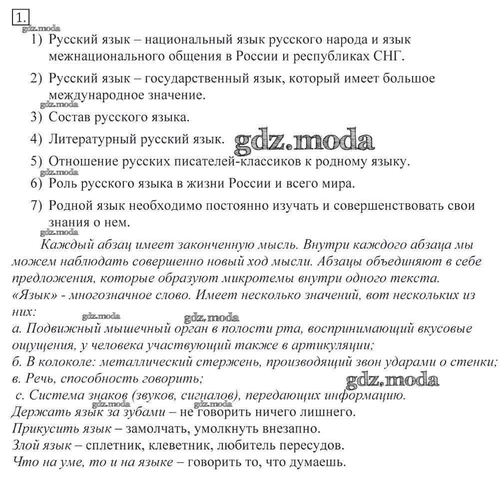 ГДЗ решение к заданию № 1 Русский язык 10-11 классы Греков В.Ф. Просвещение 2016 бесплатно на гдз.мода!