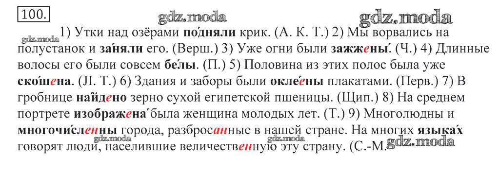 ОТВЕТ на задание № 100 Учебник по Русскому языку 10-11 класс Греков
