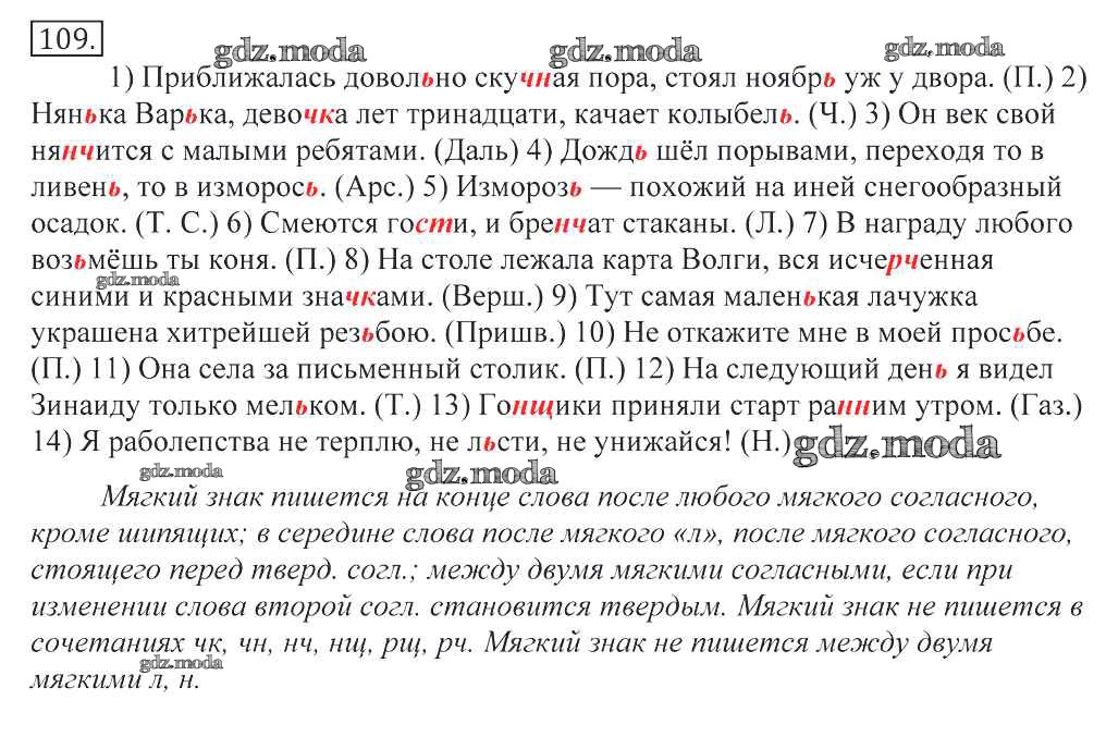 ГДЗ решение к заданию № 109 Русский язык 10-11 классы Греков В.Ф. Просвещение 2016 бесплатно на гдз.мода!