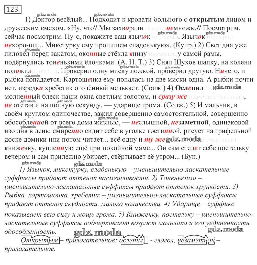 ГДЗ решение к заданию № 123 Русский язык 10-11 классы Греков В.Ф. Просвещение 2016 бесплатно на гдз.мода!