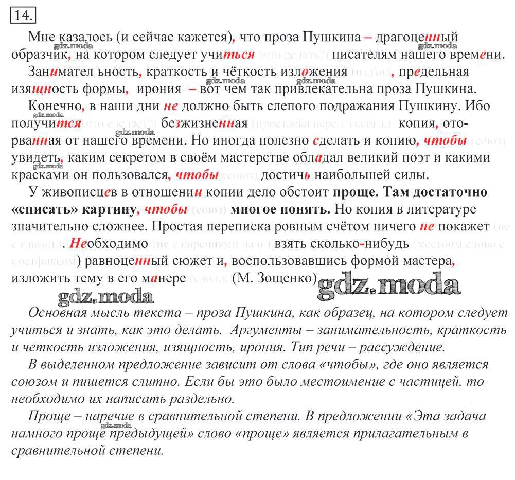 ГДЗ решение к заданию № 14 Русский язык 10-11 классы Греков В.Ф. Просвещение 2016 бесплатно на гдз.мода!