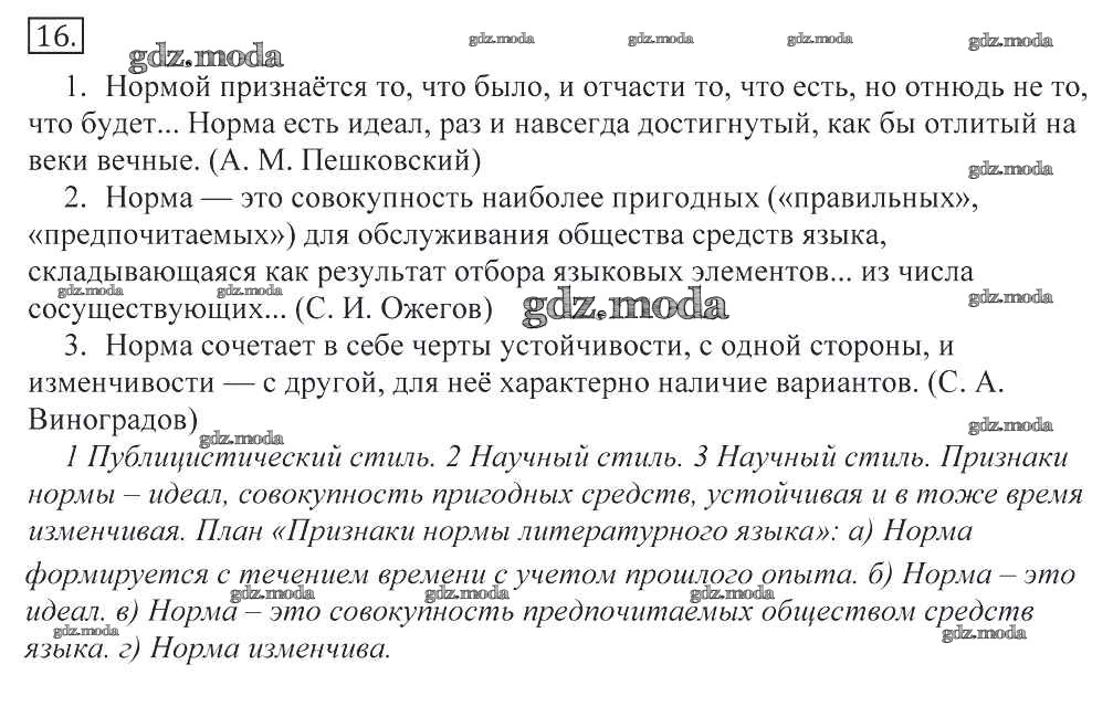 ГДЗ решение к заданию № 16 Русский язык 10-11 классы Греков В.Ф. Просвещение 2016 бесплатно на гдз.мода!