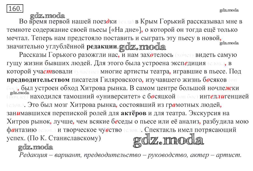 ГДЗ решение к заданию № 160 Русский язык 10-11 классы Греков В.Ф. Просвещение 2016 бесплатно на гдз.мода!