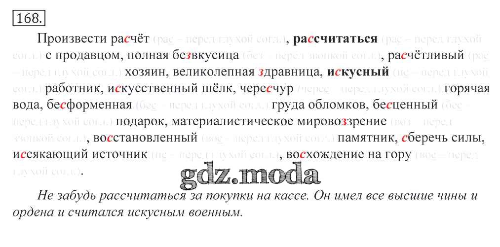 ГДЗ решение к заданию № 168 Русский язык 10-11 классы Греков В.Ф. Просвещение 2016 бесплатно на гдз.мода!