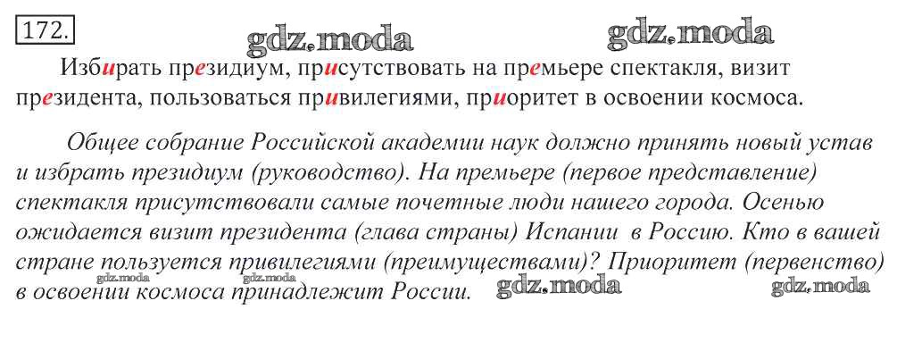 ГДЗ решение к заданию № 172 Русский язык 10-11 классы Греков В.Ф. Просвещение 2016 бесплатно на гдз.мода!
