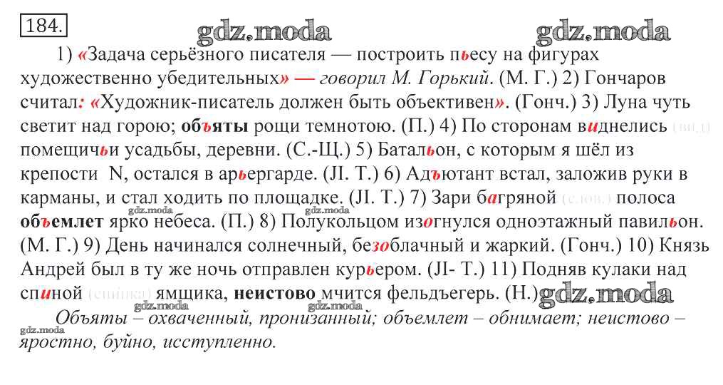 ГДЗ решение к заданию № 184 Русский язык 10-11 классы Греков В.Ф. Просвещение 2016 бесплатно на гдз.мода!