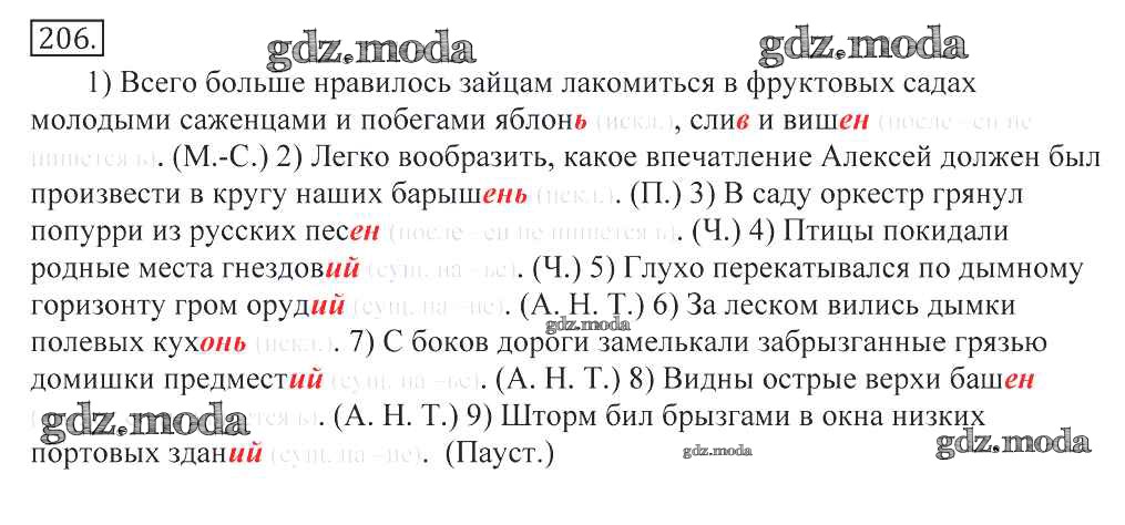 ГДЗ решение к заданию № 206 Русский язык 10-11 классы Греков В.Ф. Просвещение 2016 бесплатно на гдз.мода!