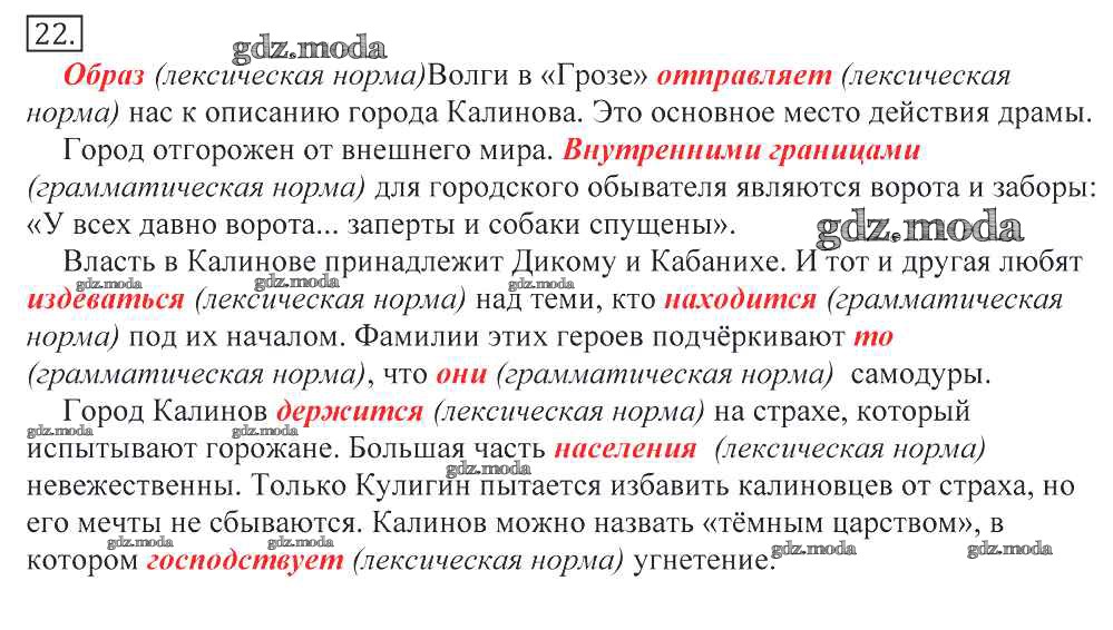 ОТВЕТ на задание № 22 Учебник по Русскому языку 10-11 класс Греков