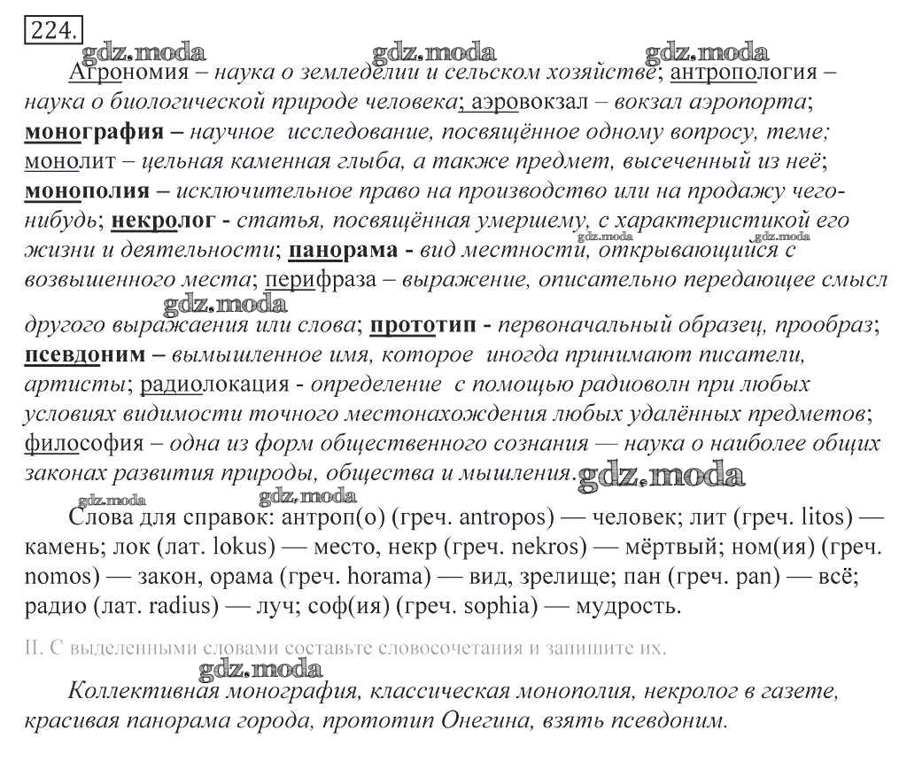 ОТВЕТ на задание № 224 Учебник по Русскому языку 10-11 класс Греков