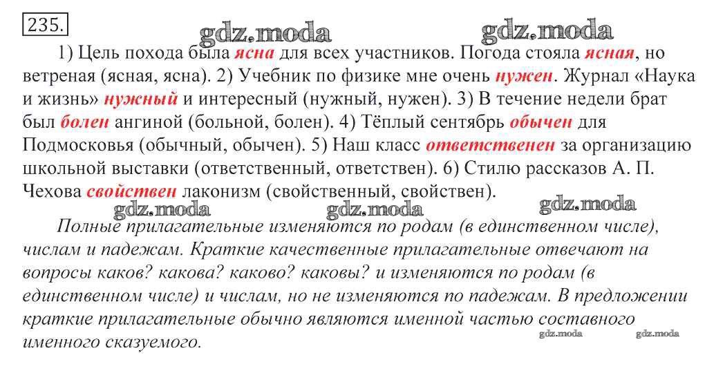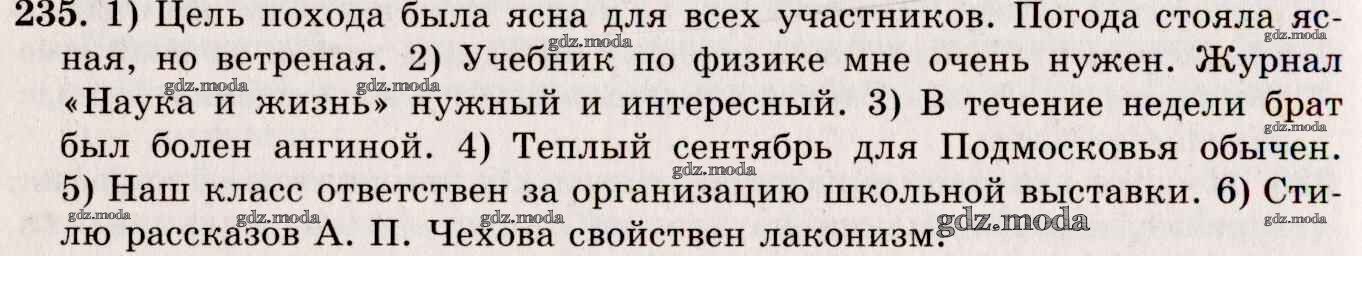 ГДЗ решение к заданию № 235 Русский язык 10-11 классы Греков В.Ф. Просвещение 2016 бесплатно на гдз.мода!