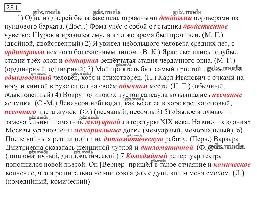 ГДЗ решение к заданию № 251 Русский язык 10-11 классы Греков В.Ф. Просвещение 2016 бесплатно на гдз.мода!