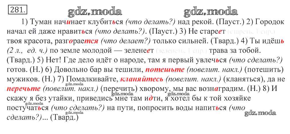 ОТВЕТ на задание № 281 Учебник по Русскому языку 10-11 класс Греков