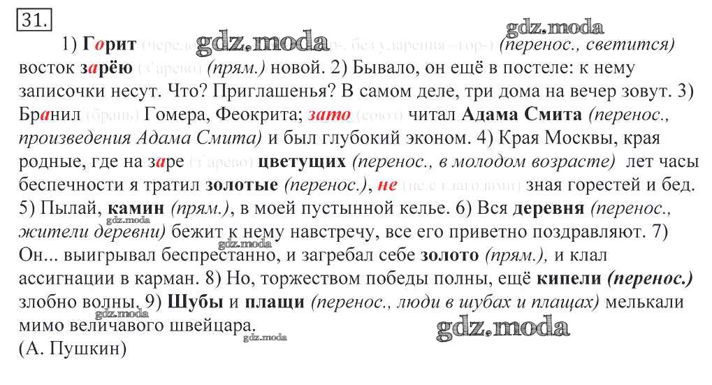 ГДЗ решение к заданию № 31 Русский язык 10-11 классы Греков В.Ф. Просвещение 2016 бесплатно на гдз.мода!