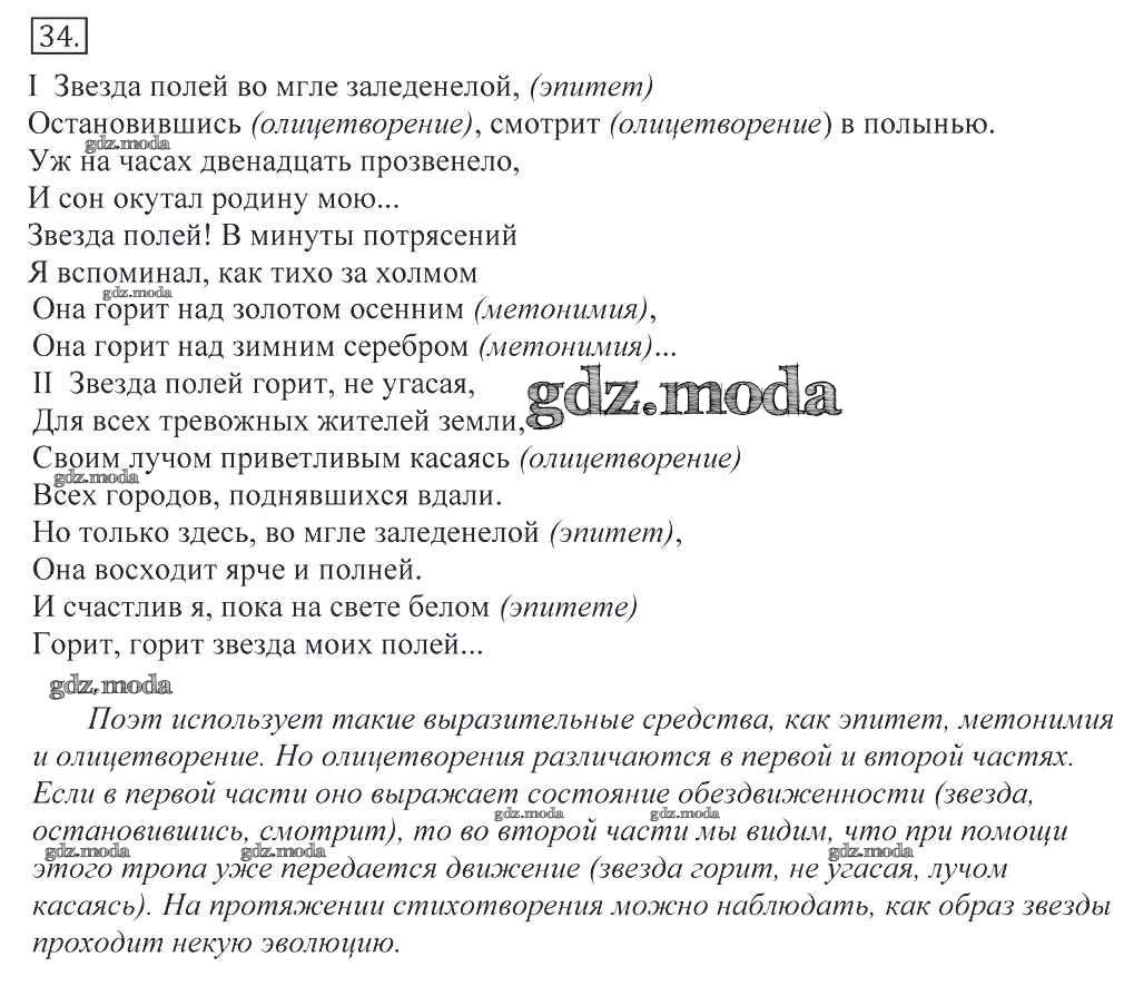 ГДЗ решение к заданию № 34 Русский язык 10-11 классы Греков В.Ф. Просвещение 2016 бесплатно на гдз.мода!