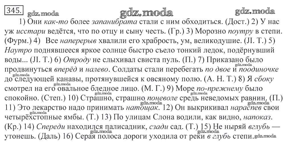 ГДЗ решение к заданию № 345 Русский язык 10-11 классы Греков В.Ф. Просвещение 2016 бесплатно на гдз.мода!