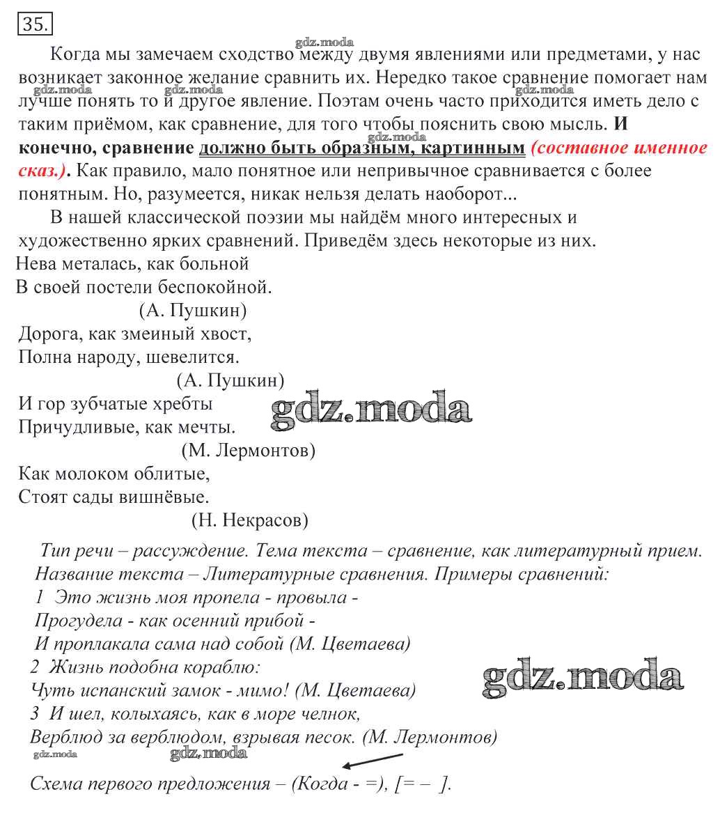 ГДЗ решение к заданию № 35 Русский язык 10-11 классы Греков В.Ф. Просвещение 2016 бесплатно на гдз.мода!