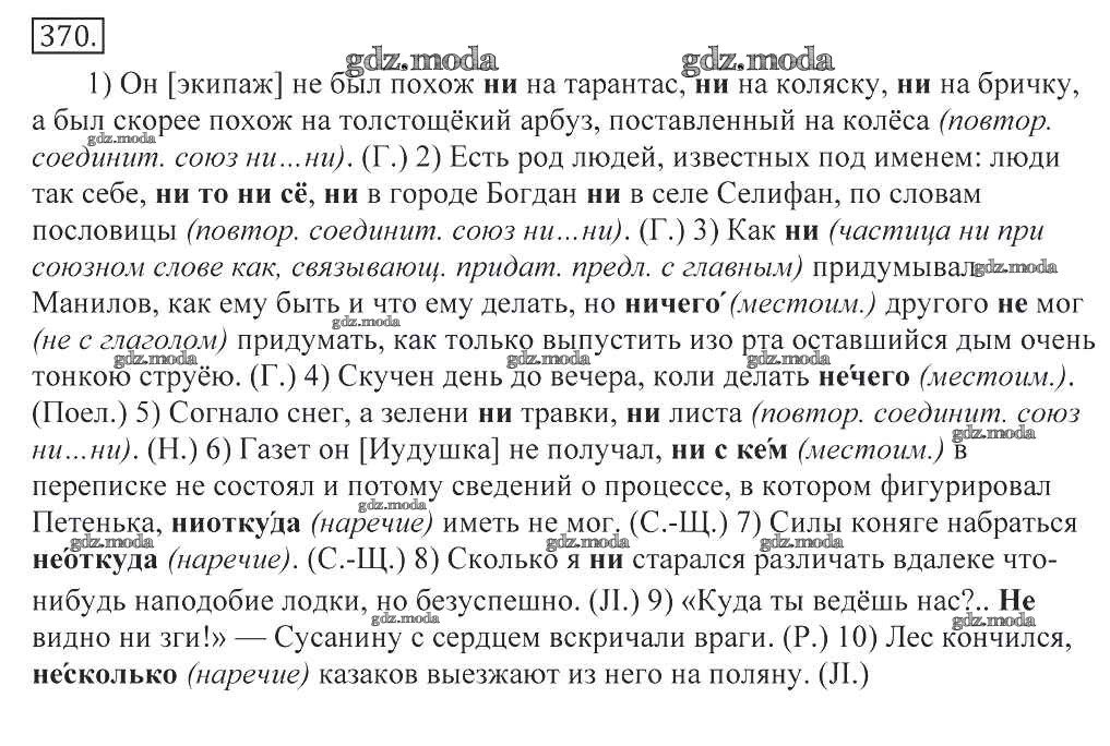 ОТВЕТ на задание № 370 Учебник по Русскому языку 10-11 класс Греков