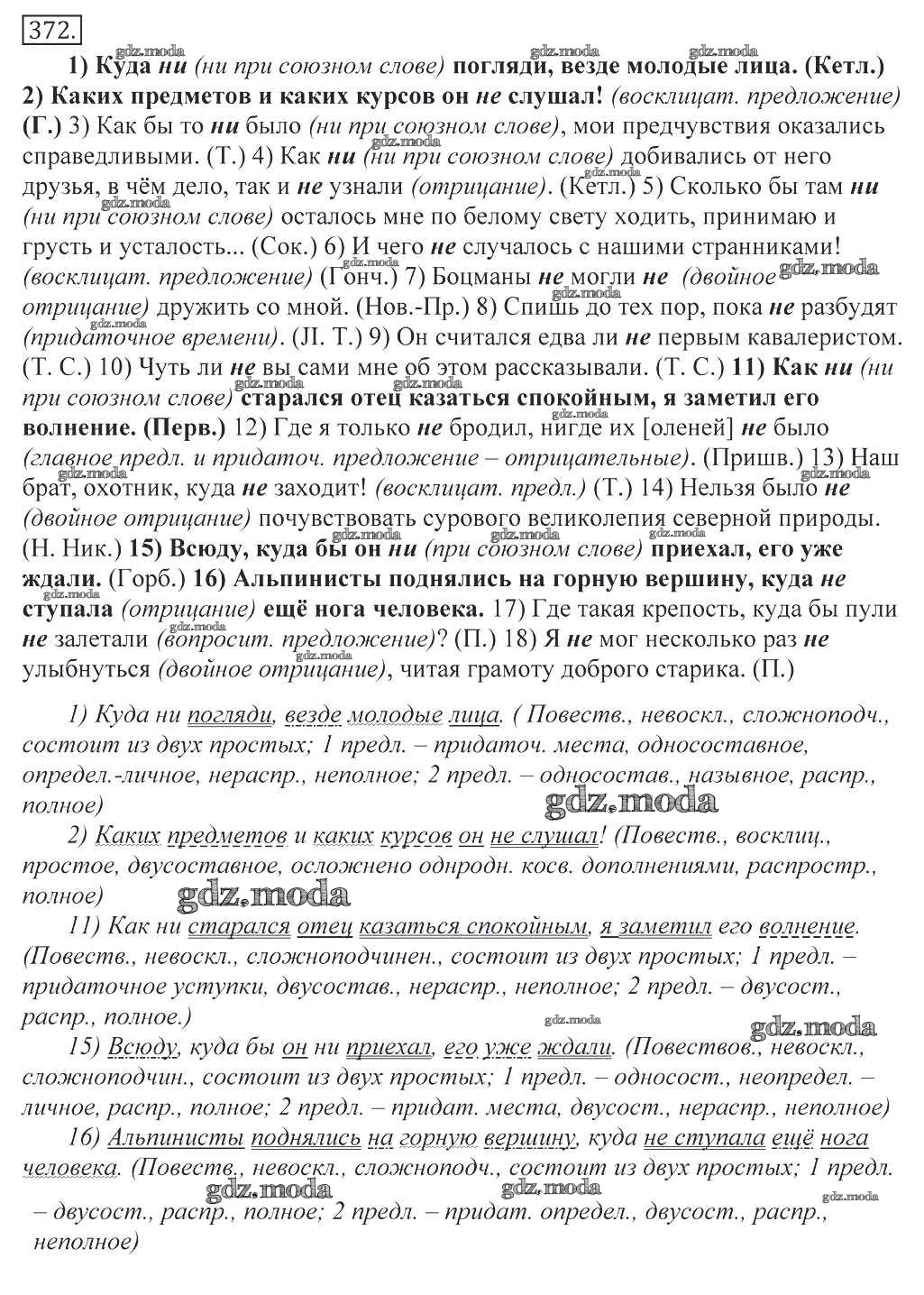 ГДЗ решение к заданию № 372 Русский язык 10-11 классы Греков В.Ф. Просвещение 2016 бесплатно на гдз.мода!