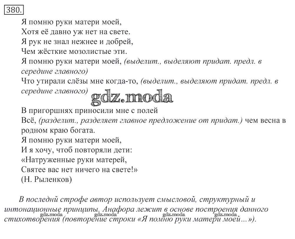 ГДЗ решение к заданию № 380 Русский язык 10-11 классы Греков В.Ф. Просвещение 2016 бесплатно на гдз.мода!