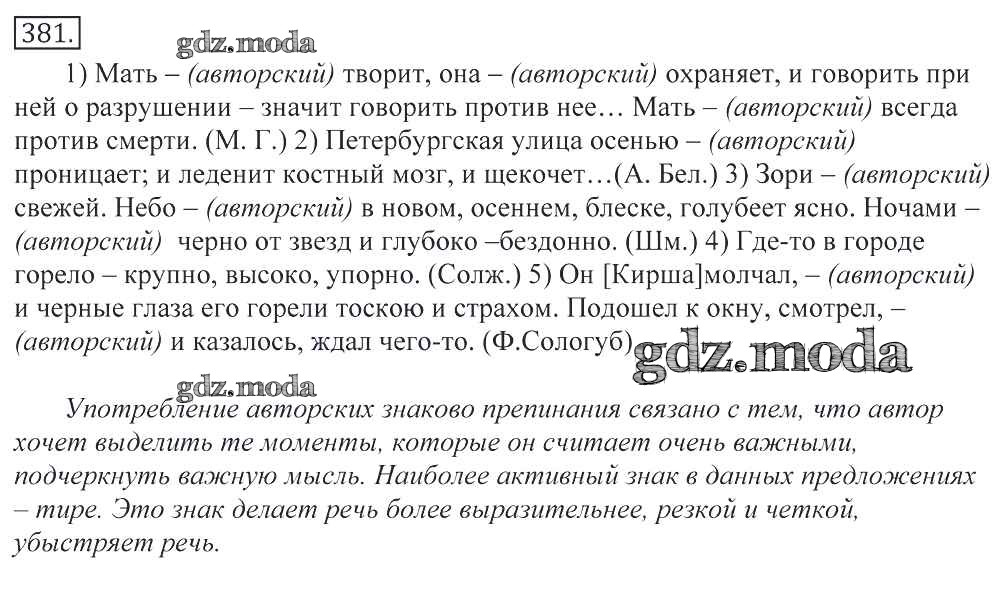 ГДЗ решение к заданию № 381 Русский язык 10-11 классы Греков В.Ф. Просвещение 2016 бесплатно на гдз.мода!
