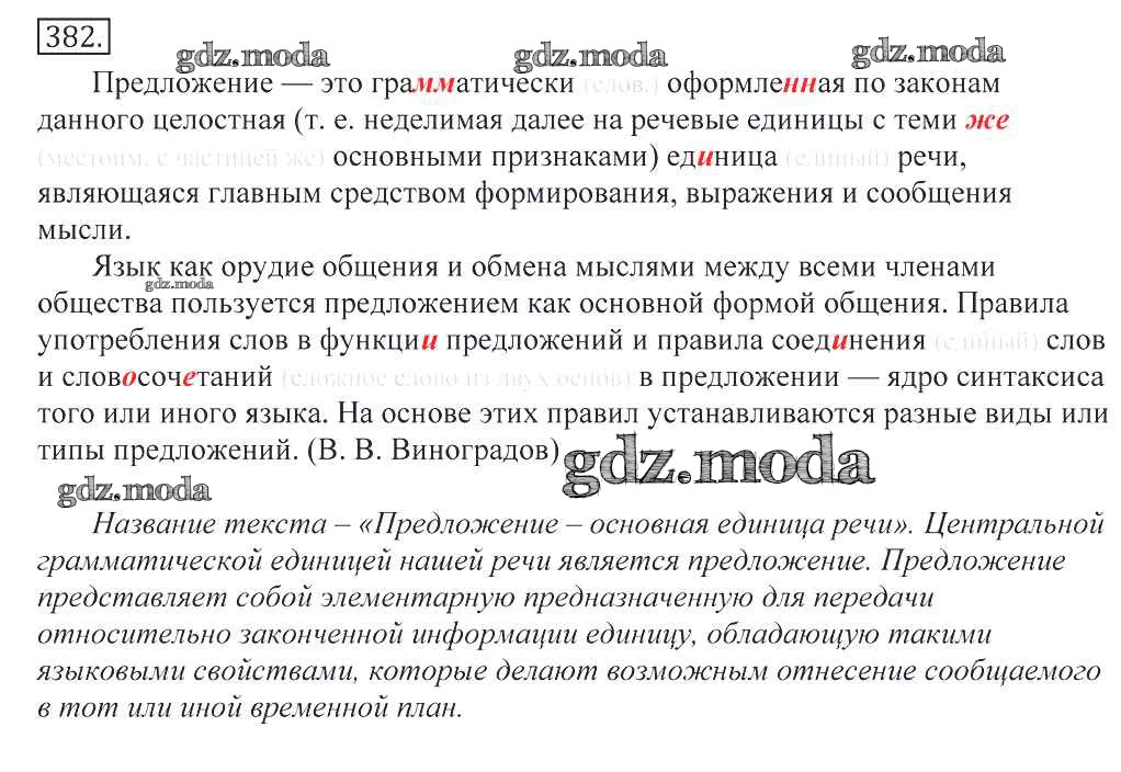 ГДЗ решение к заданию № 382 Русский язык 10-11 классы Греков В.Ф. Просвещение 2016 бесплатно на гдз.мода!