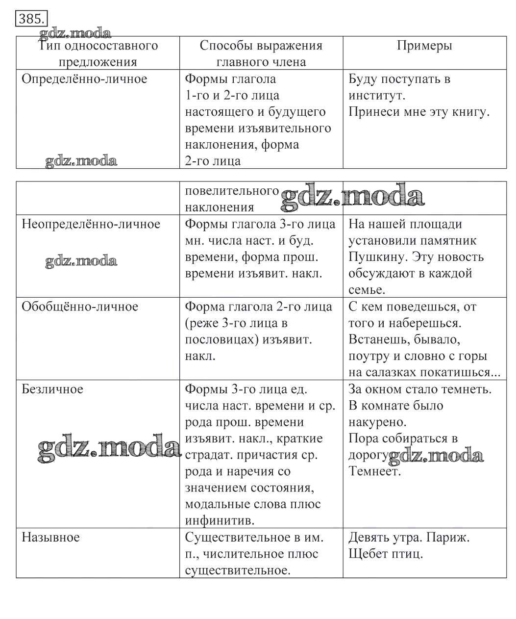 ГДЗ решение к заданию № 385 Русский язык 10-11 классы Греков В.Ф. Просвещение 2016 бесплатно на гдз.мода!
