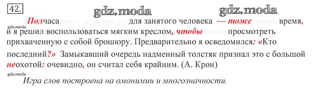 ГДЗ решение к заданию № 42 Русский язык 10-11 классы Греков В.Ф. Просвещение 2016 бесплатно на гдз.мода!