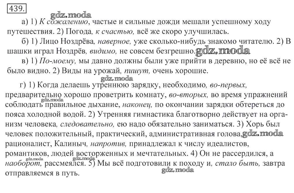 ГДЗ решение к заданию № 439 Русский язык 10-11 классы Греков В.Ф. Просвещение 2016 бесплатно на гдз.мода!