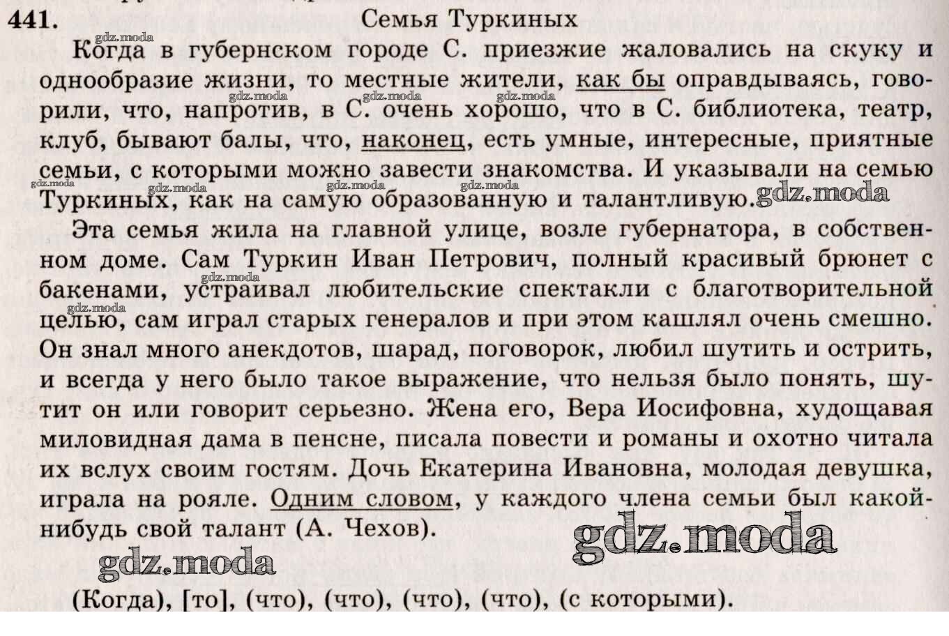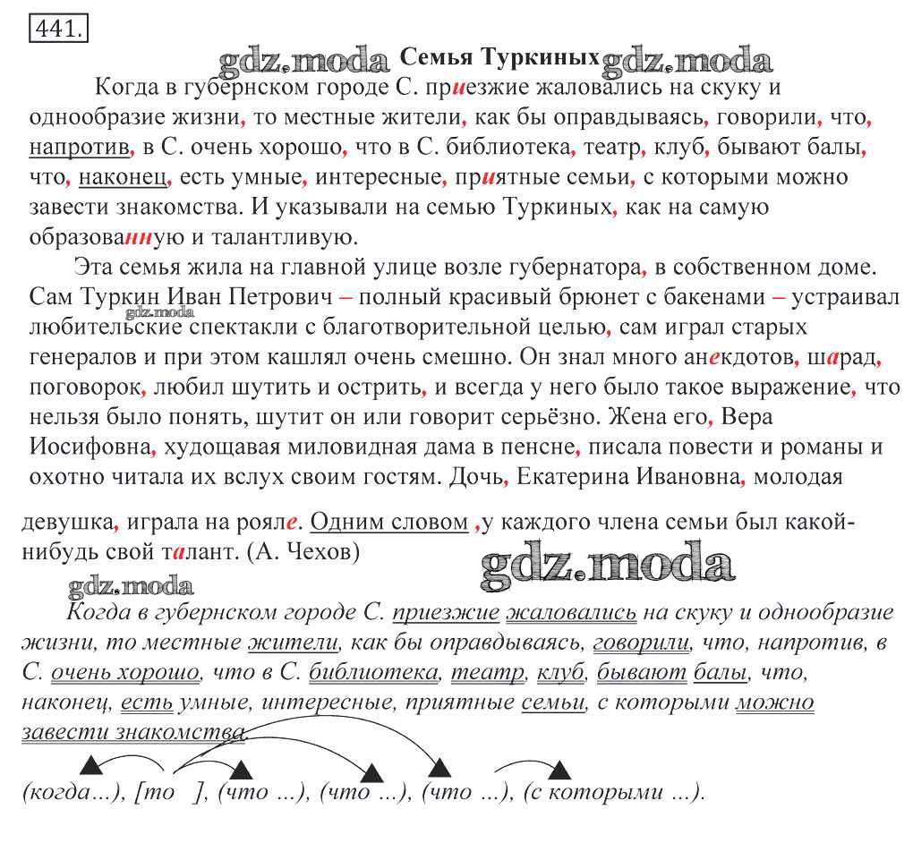 ГДЗ решение к заданию № 441 Русский язык 10-11 классы Греков В.Ф. Просвещение 2016 бесплатно на гдз.мода!