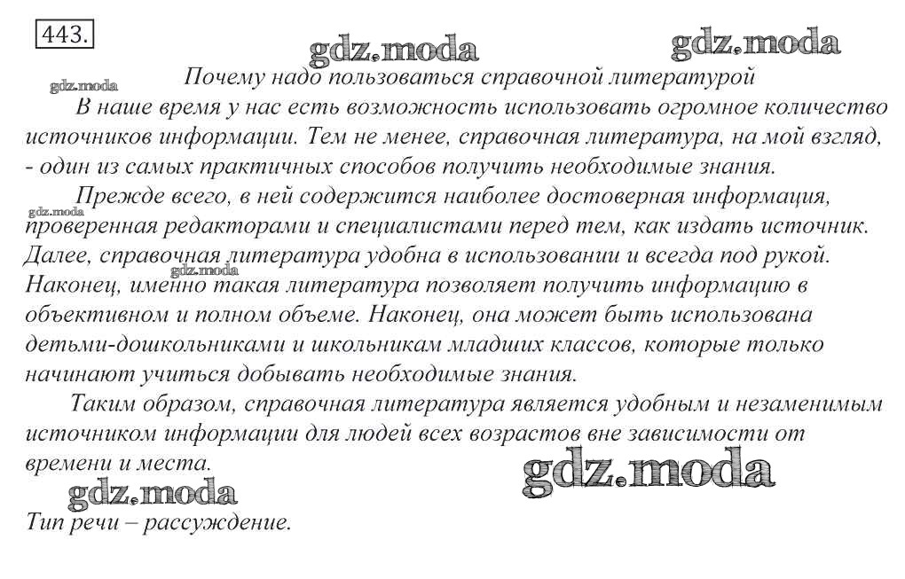 ОТВЕТ на задание № 443 Учебник по Русскому языку 10-11 класс Греков