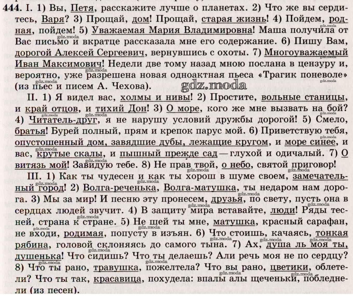 ГДЗ решение к заданию № 444 Русский язык 10-11 классы Греков В.Ф. Просвещение 2016 бесплатно на гдз.мода!