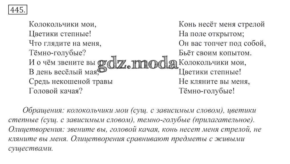 ГДЗ решение к заданию № 445 Русский язык 10-11 классы Греков В.Ф. Просвещение 2016 бесплатно на гдз.мода!