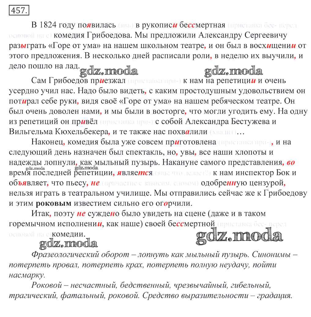 ГДЗ решение к заданию № 457 Русский язык 10-11 классы Греков В.Ф. Просвещение 2016 бесплатно на гдз.мода!